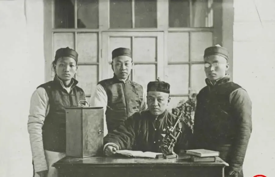 这张合影叫医馆课堂的面孔,先生坐在桌后,铸铁显微镜搁在手边,门生穿马甲戴小帽站在侧后,神情紧绷得很,像要背书,爷爷笑我说看相片就知道那会儿念书不轻松,课上记的是脉络骨节,课后得学抓药认器械,规矩多得像院子里那排窗格一样,一条对一条,不许乱。