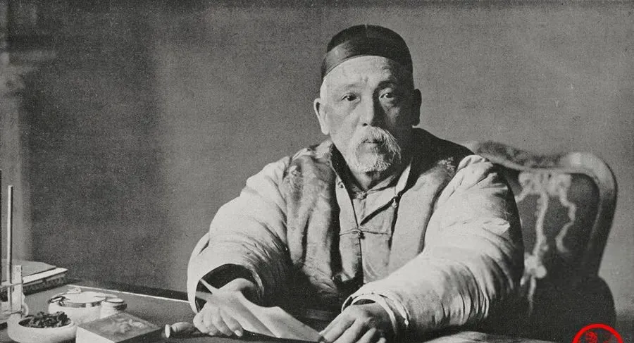 图中这位穿棉袍戴小帽的老者就是袁世凯的晚年样貌,面色沉重,胡子发白,桌上压着公文和笔架,像是刚批完件就被相机逮个正着,桌角的铜墨盒与粗瓷笔洗,尽是旧时官场的常见物件,神情里有点累,也有点拧巴。