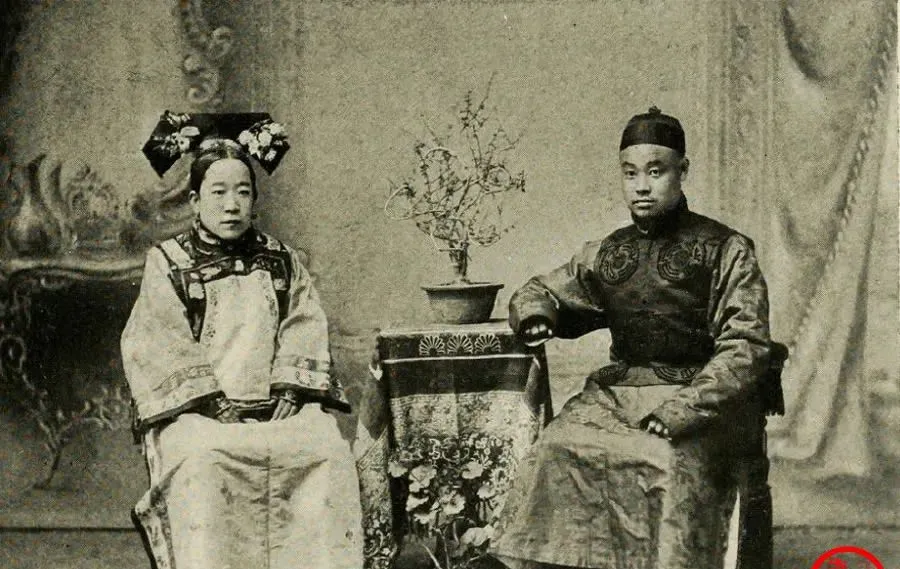 这对坐姿一看就是规矩人,福晋头顶大拉翅,两侧别绢花,领口压着盘金滚边,亲王穿团龙补服,袖口收得紧,桌上摆一盆珠叶珊瑚,叶片亮得像上了油,爷爷指着照片说,你看旧时男人上镜都绷着脸,笑一笑被说轻浮,女眷也一样,眉心要正,嘴角要平。