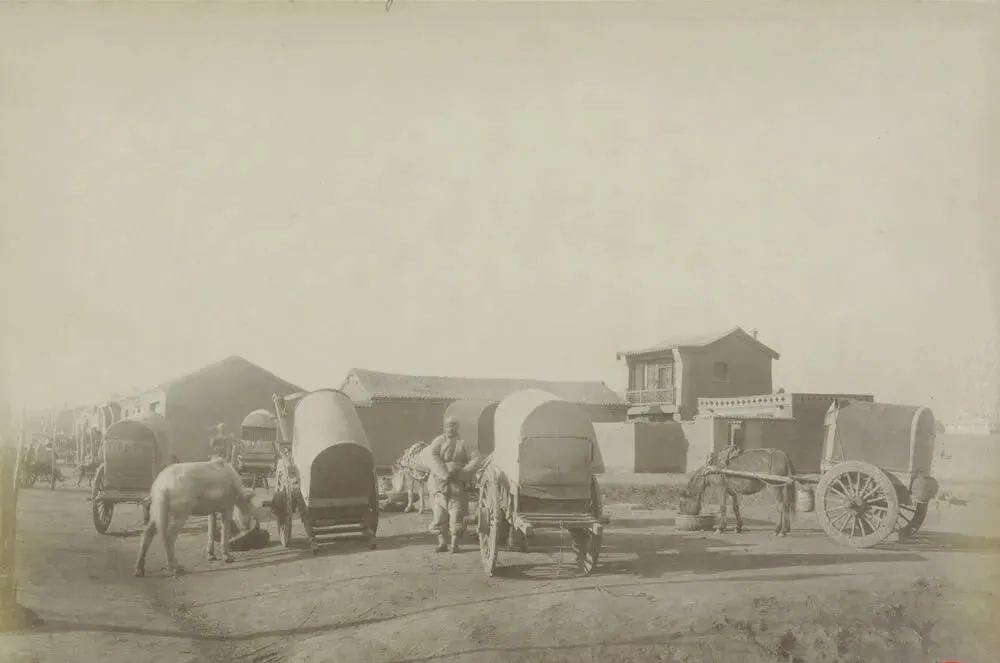 这几辆罩着弓篷的叫四轮篷车,粗辐条大木轮,牛马套在前头,车帮子钉着铁皮防磕碰,掌柜的拿皮鞭不急不缓地拍车辕,客人往里一钻,帘子一放,尘土就与人隔开了,可别觉得体面,路一颠,腰椎先喊疼,爸爸笑说这玩意儿是老时代的中高档出行,看着体面坐着遭罪。
