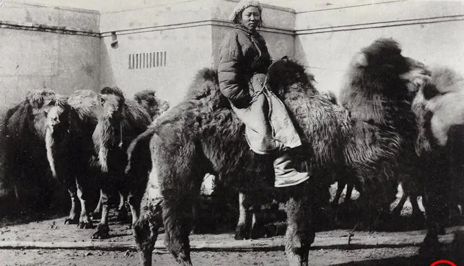 清末老照片:男人大辫子高高飞起,女子骑骆驼显霸气。