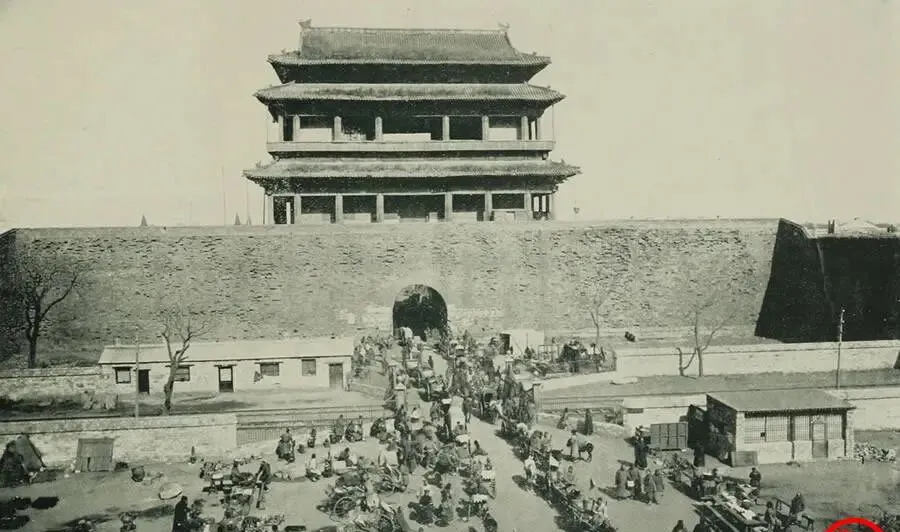 这个门洞下熙熙攘攘的就是崇文门,里外都是车马担子,货郎挑着担走得飞快,门额上风一吹就卷起灰尘,旧诗里说这里收税凶,“九门征课一门专”,想象得出管税的盯着来往的客商,手里算盘叭叭响,现在这地儿早没城门了,楼一圈一圈围上来,谁还想得到当年出入京城要从这儿排队过。