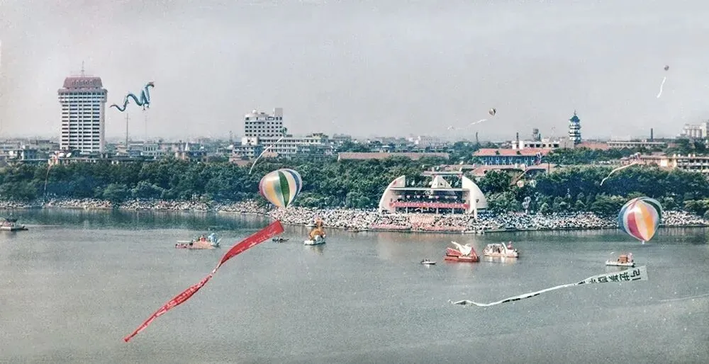 这些照片看了一眼,让我不禁感叹,哇!那时候的九江也好热闹啊,你看那时候热闹的龙舟比赛、九江龙开河、九江客运港、九江体育场、汽车展销会……
