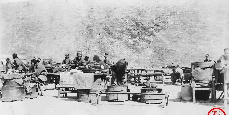 这个一字排开的摊阵叫早点铺,木箱当桌,铁锅冒着白汽,旁边是炸糖耳朵的长柄漏勺,切糕的刀板油光光,摊主一只手端碗一只手抹围裙,嘴里吆喝得欢,早晨一碗甜浆粥下肚,再来一块艾窝窝,肚子里就稳当了,妈妈说她小的时候路过这样的摊,一听到铁勺敲锅的脆响,脚步就不自觉快两步。