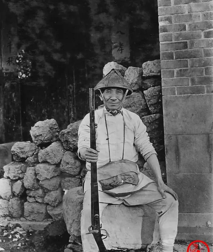 这个靠在石墩上的铁长条叫火绳枪,老汉戴着斗笠,腰里扎布囊,手指骨节粗大,枪托在膝上,嘴角带点笑,他说,村里夜里巡更,遇上贼喊一嗓子,狗先叫,人就聚齐了,可那阵子乱,手里没点家伙也不踏实,现在进出全是门禁卡,谁还守着门墩子吹冷风。