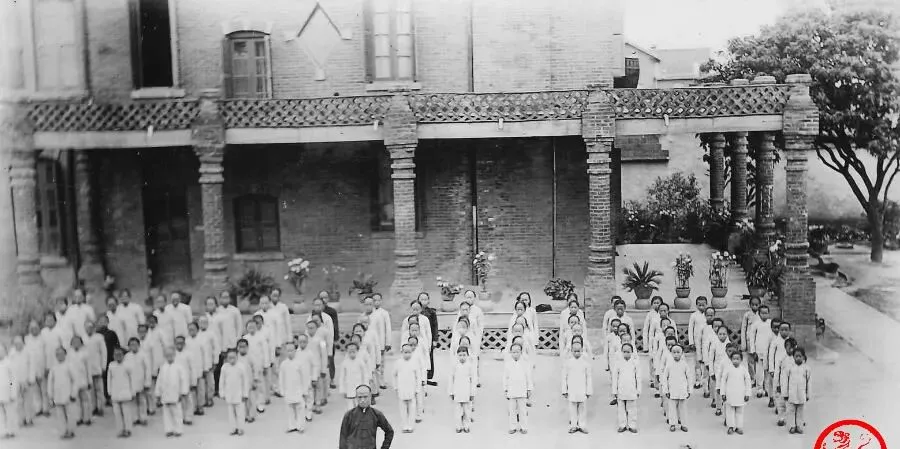 图里这排整整齐齐的小号衣叫学生装,白布领口翻得齐齐的,操场是砖楼前的空地,老师立在队列前,手背在身后,口令一落,孩子们抬头挺胸,奶奶笑,说那年废了科举,城里新学堂越办越多,以前读书为中举,如今读书为开眼,这句她念叨到老。