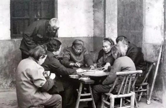 1997年2月,塘栖东小河,在家门口搓会麻将,这是是当时老人们的一种娱乐方式。