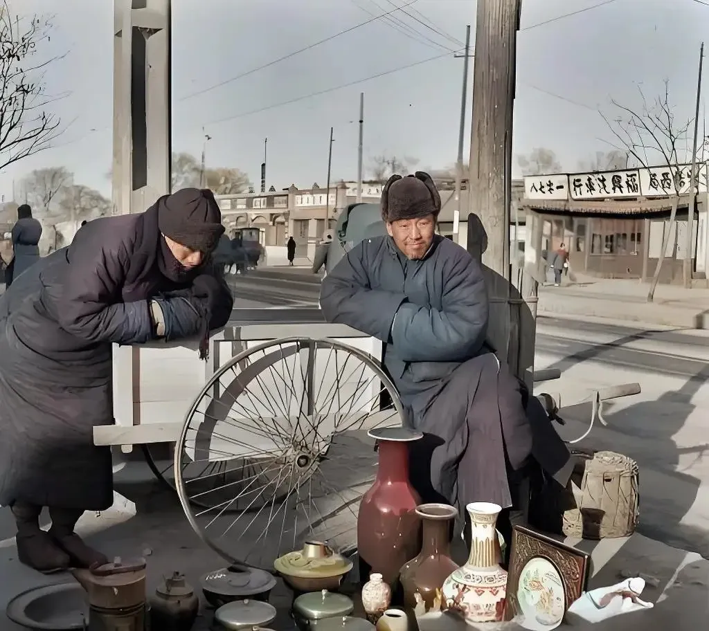 这些古董真不真,摊上一半看相,一半看缘,清末民初的居多,民窑里走出来的占大头,值不值钱也别一句话定死,会过日子的人,把家过暖了,铜火锅就是宝,把茶泡香了,砂壶就是宝,把画挂正了,瓷板就是宝,你看这张老照片,风从北城门吹下来,摊主袖里藏着火,街上的人走得很慢,我们把目光放在这些小物件上,像把自己的日子也摆在阳光里,慢慢挑一挑。