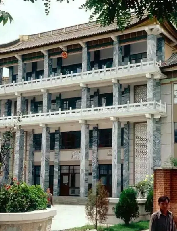 这个有栏杆有柱子的楼叫州政府办公楼,立面用的是灰白相间的条纹石,窗棂方正,走廊上风一吹回音清清亮亮,老辈人说那会儿去办事穿最体面的中山装,口袋里夹个笔,站在台阶边抻一抻衣角才往里走。