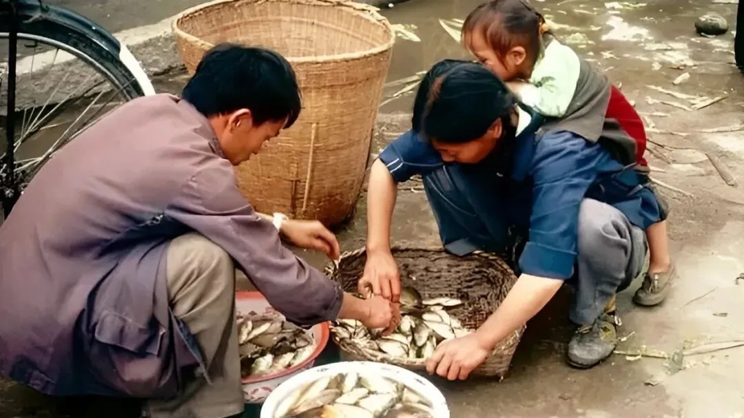 这个扁口的竹篓就是装鱼的家伙,篓编得密,边子厚,男人蹲着挑拣,小孩背在娘背上往里瞧,手里黏着水汽的鳞片一抹就亮,闻得到一股清腥味,买回去一碗酸辣鱼,连汤都见底。