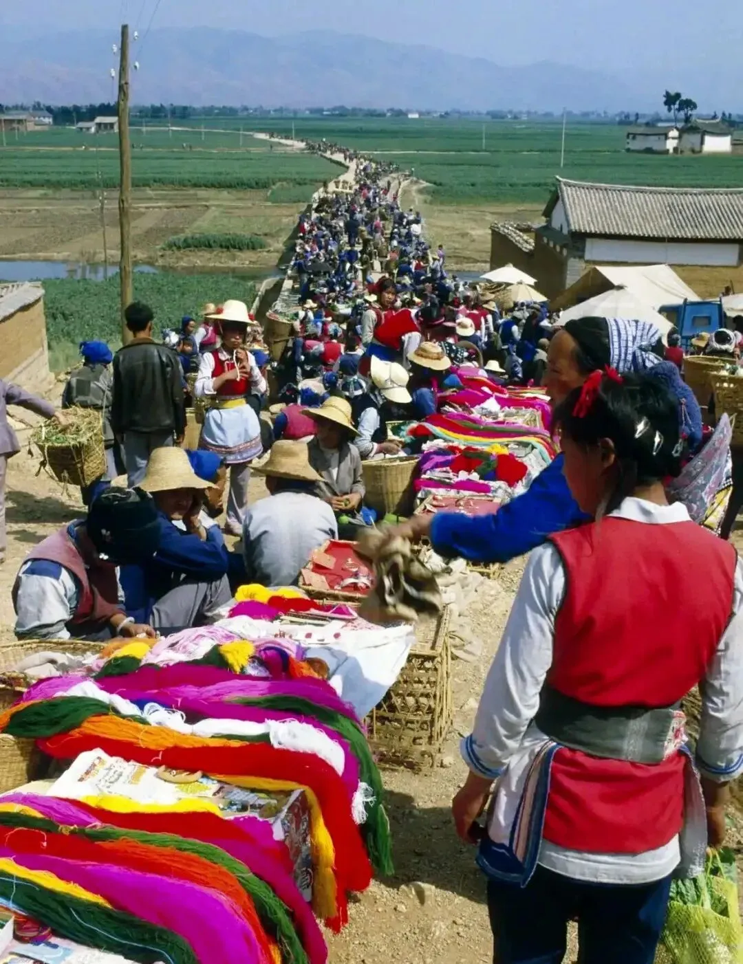 这条铺在田埂上的长龙是大集,彩线团像彩虹一样铺满桌面,卖布头的唱着价,挑担的人把草帽压得低低的,早市一散,风把尘土往田里一吹,地里又该忙活起来了。