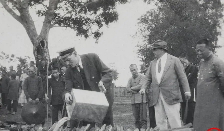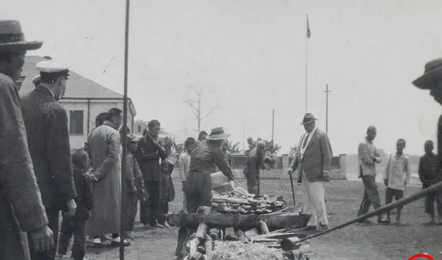 老照片:1920年销烟现场,鸦片化为灰烬大快人心。