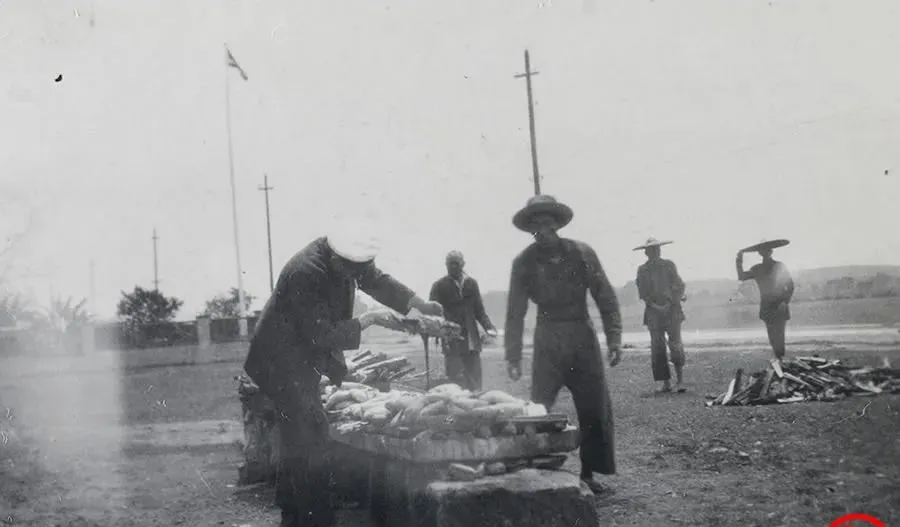 这活儿最见耐性,火一旺就把外皮烤脆,里面还黏着呢,需要人用铁叉挑开再压下去,见火势弱了,再添一点煤油,爷爷说当年就怕烧不透,留一坨就是祸根,现在看着照片都替他们捏把汗。