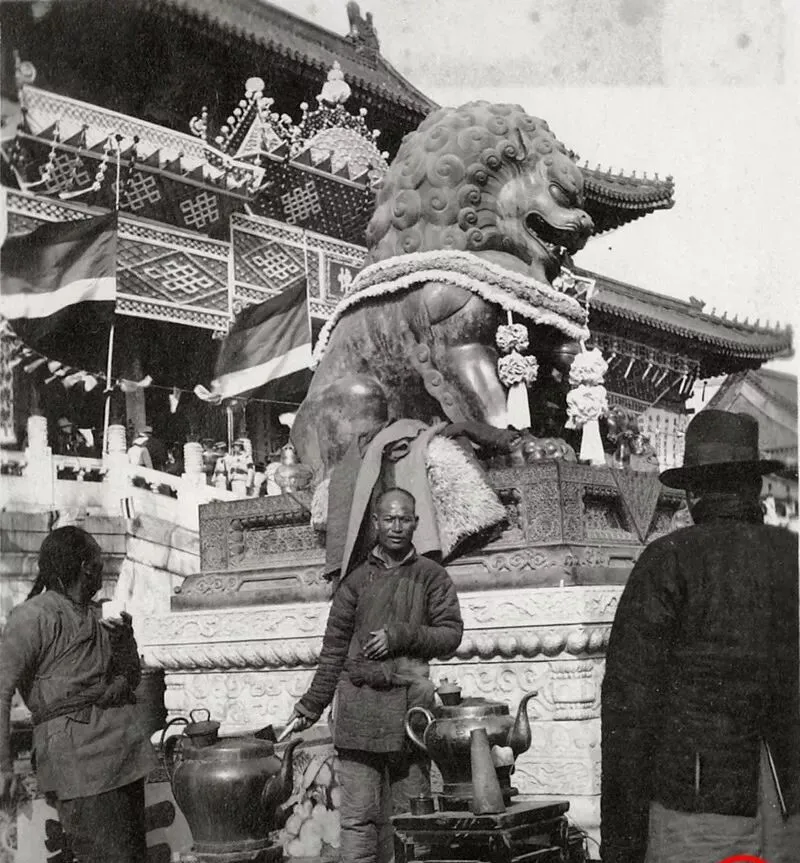 这个茶担挺讲究,铜壶被擦得铮亮,案上摆了碗盏,背后狮子身上挂流苏,旗幡一字排开,香客走走停停,手一抬就有热水递上来,妈妈说上山求个心安最要紧,一路歇一路喝,嘴里烫得直哈气,也觉得路没那么难了。