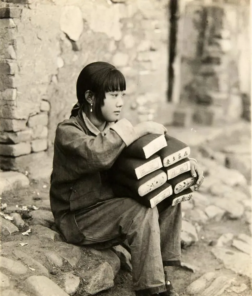 这位小姑娘抱着成摞的软枕,侧着脸看远处,枕套边上还绣了小花名号,袖子挽到手腕,鞋面有些灰,乡场上一坐能坐半天,来个客人问价她就报,声音不高不低,小小年纪就会做买卖,如今城里商场灯一照,扫码一滴,谁还蹲地叫卖。