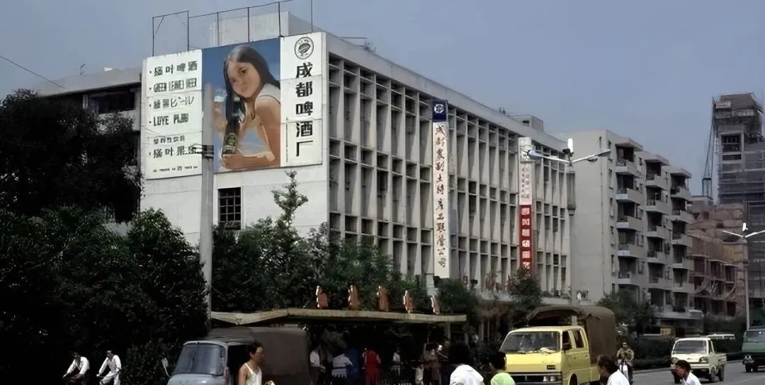 这面墙上的成都啤酒厂广告可真敢画,姑娘举着绿瓶子笑得直,楼下车来车往,晚风里能闻见麦芽甜味,父亲说下酒菜不讲究,花生米一炒,啤酒一拧就开。