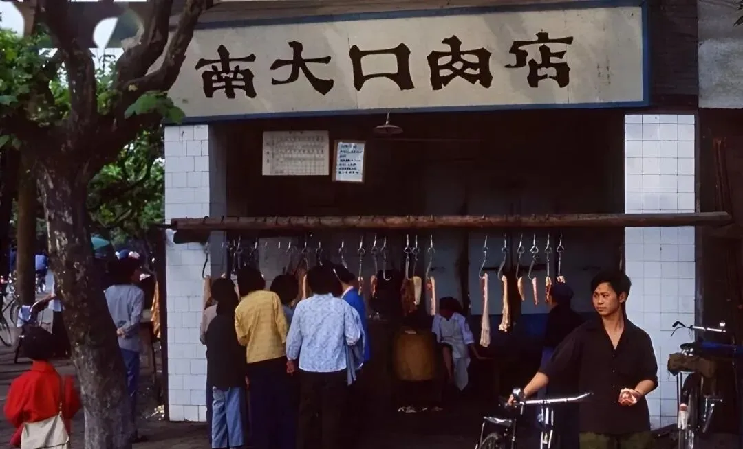 这家门口写着南大口肉店,铁钩子上挂着整条五花,案板上亮出杀猪刀,排队的人掂着票子挑肥瘦,师傅手腕一抖下去,带皮的那截正合适,拿回家炖回锅肉才叫香。