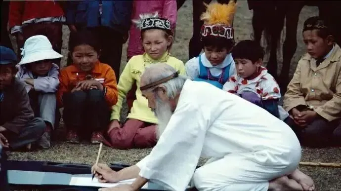 这个盘腿写字的老先生,面前铺着布卷,毛笔蘸得很稳,孩子围一圈看得入神,谁也不吵,风把孩子帽檐掀了一下,露出亮闪闪的眼神,妈妈在旁边念叨,写得好,等你识了字就知道妙处了。