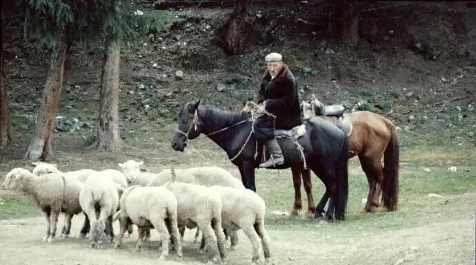 这位老伙计骑在马上,前面一群绵羊挤挤挨挨,羊毛白到发光,马鞍上挂着皮水壶,走走停停,嘴里吹个短调,树荫底下凉飕飕的,他抬手一指,羊群立刻拐弯,麻利得很。