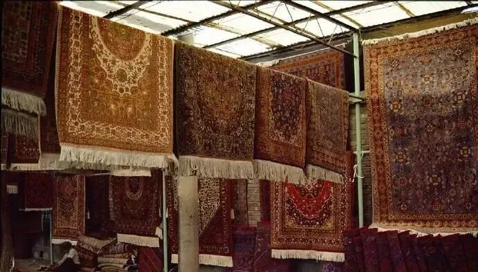 这幅幅厚实的叫地毯,红的土黄的深蓝的,从梁上垂下来,把屋子都染暖了,摸一把柔韧结实,纹样绕来绕去像唱歌,爷爷说,买地毯得看背面,结子扎得紧,铺下去才服帖耐用。