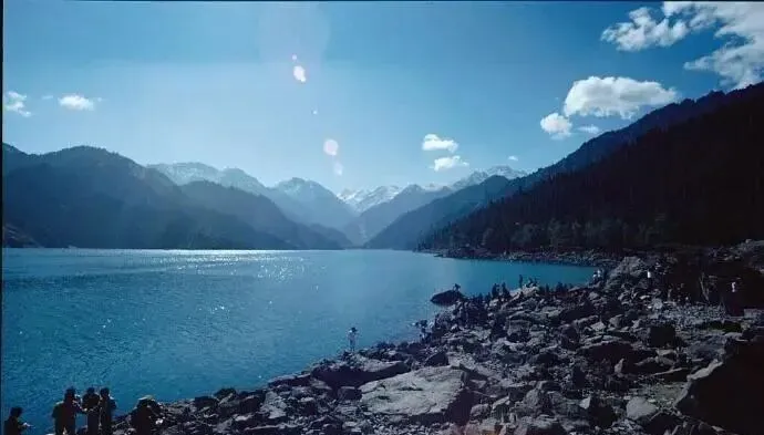 这片蓝得犯规的湖,就是天池,水面被风刮起一层碎银,山影在里头晃,太阳往上一站,雪线跟着亮,游人站在石头上不言不语,照一张相都舍不得按快门,怕把静气惊散了。