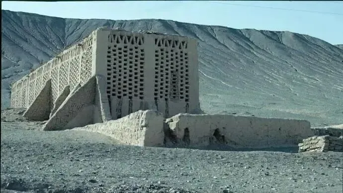 画面里这个砖孔孔的屋子,就是晾房,里头挂葡萄干,孔洞多透风快,外头一辆驴车慢悠悠驶过,车棚用蓝布遮着太阳,木轮子颠得咯吱响,孩子扒着车沿看风景,大人把包袱往里挪了挪,说,坐稳了啊。