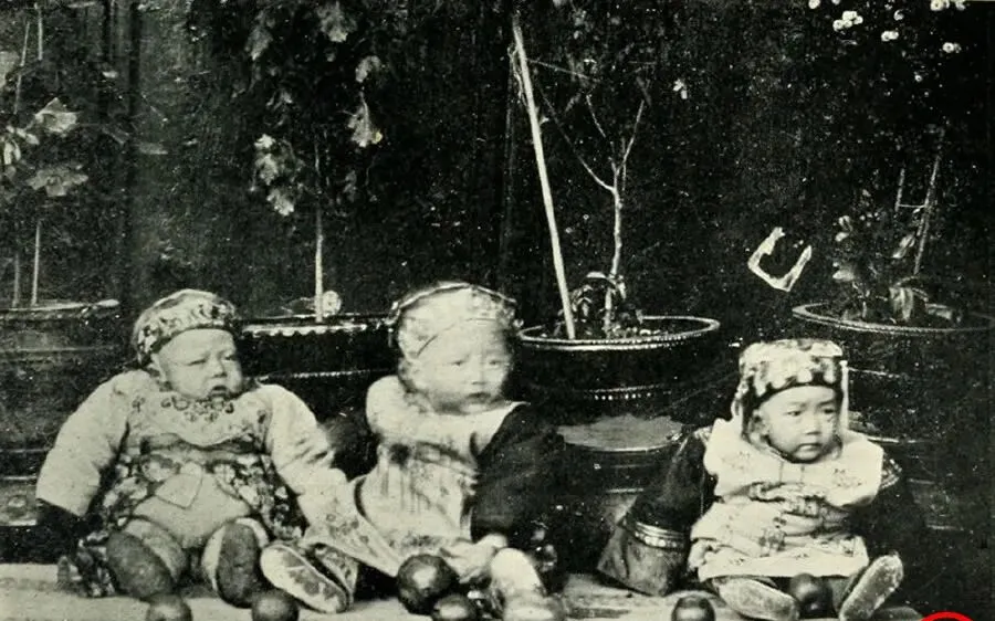 图中这三个奶乎乎的小家伙叫三胞胎,绣花襁褓裹得严实,额前压着亮片,脚边散着几个圆滚滚的果子,正中那位眼珠骨碌碌的,像是在找镜头,奶奶看见这张会说一声稀罕呢,以前拍照可不容易,能把三个一起按下快门,家里条件八成不差。