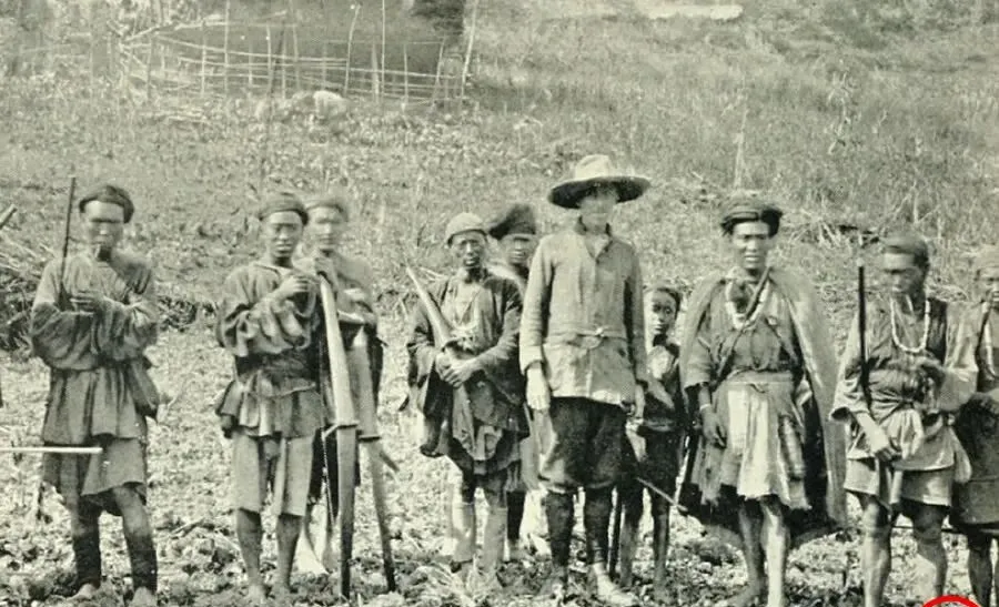 这群穿短褂扎腿绑带的汉子多是山里人,手里攥的长矛弓箭就是赶山护寨的家伙,腰间挂着刀鞘,脚面泥巴还没干,站在当中的高帽外乡人惹眼得很,姥爷说那会儿山沟沟消息闭塞,外头人来一趟得翻几座梁子,谁不多看两眼。