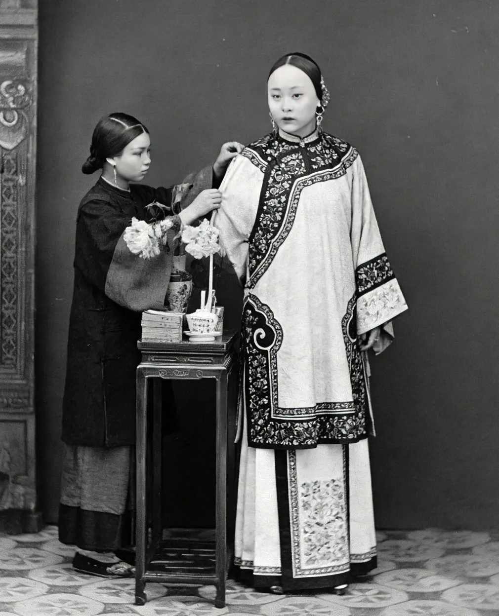 一张老照片里的两种人生:清末富家小姐与通房丫鬟