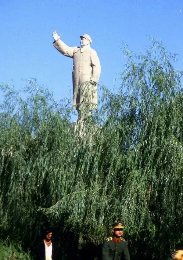 图中高举手臂的石像就是城里的方向感,底下是垂着的柳树帘,枝条擦过路人肩膀,战士骑着自行车刷一下就过去了,那时候抬头一看见它,心里就踏实。