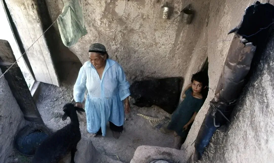 这片灰墙围出的角落叫天井,墙上钉着铝盆铁勺,黑色的小羊在脚边拱来拱去,女人掀门帘探头出来,孩子缩在阴影里看客人,风从上面落下来,带着一点凉意。