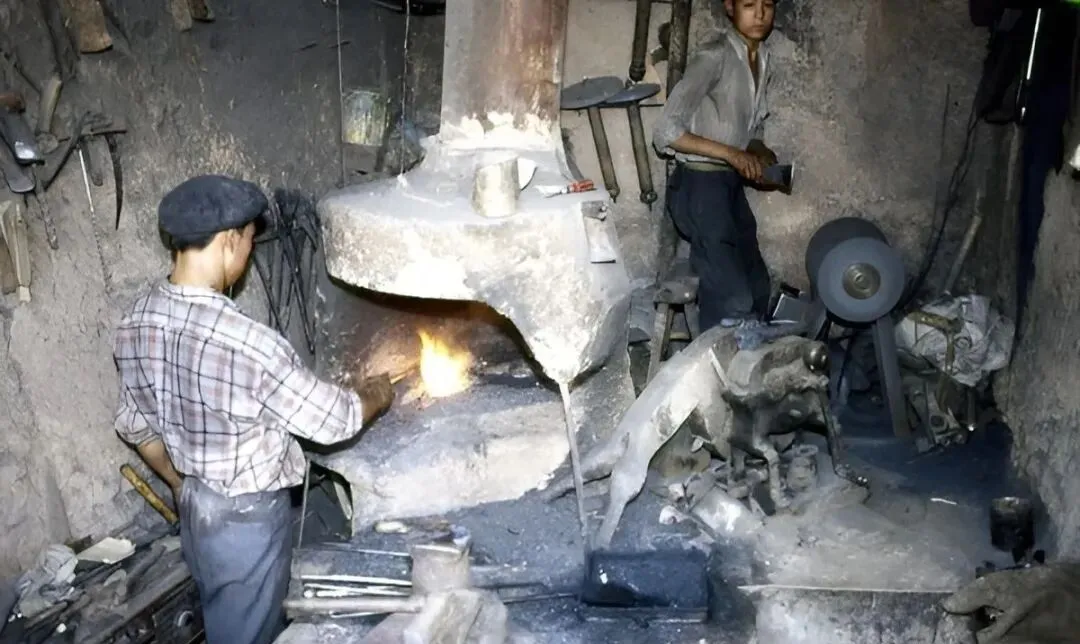 这个红亮的口子叫风箱嘴,火舌往外蹿,铁块被烧得发白,师傅抡起锤子啪啪落在砧上,火星四下窜,另一个小伙在旁边磨刀,砂轮一转就吱啦啦唱起来,奶奶说家里镰刀卷了刃,就往这儿跑,几下子就锋利。