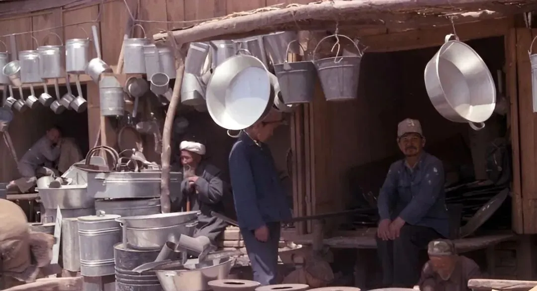 图中这一片是土坯房的背影,墙角被风磨出了坑,屋顶压着木梁和草,街上挤满人,摊位撑着白布,卖蔬菜的吆喝声不高,可一路能听见,现在商场一进空调直吹,味儿没了,热闹也换了样子。