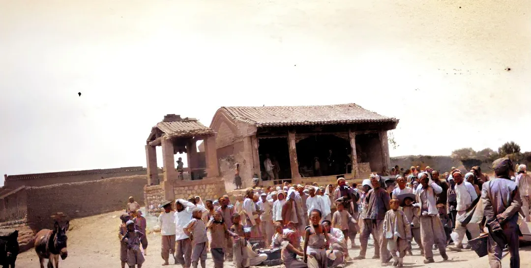老照片:1914年,山西唱大戏,观众突然回过头看什么。