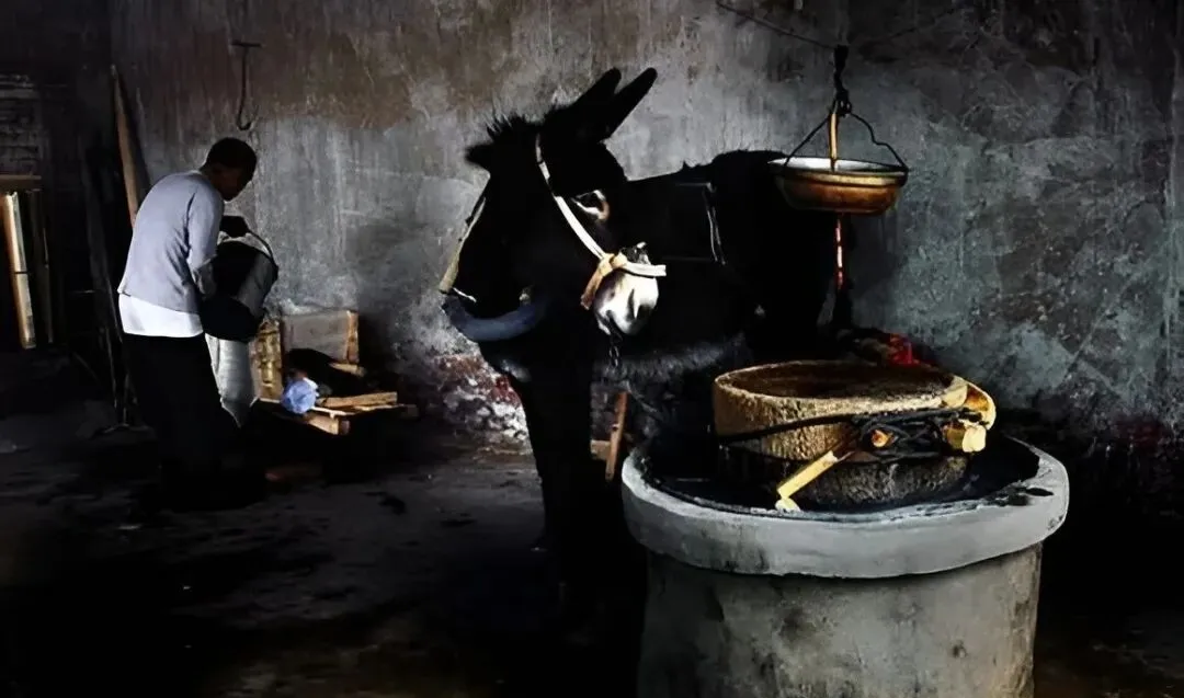 这间屋是豆腐坊,小毛驴蒙着眼绕圈走,石磨吱呀吱呀,男人把磨出的浆倒进锅里,热气一冒,豆香就把半条街招来了。