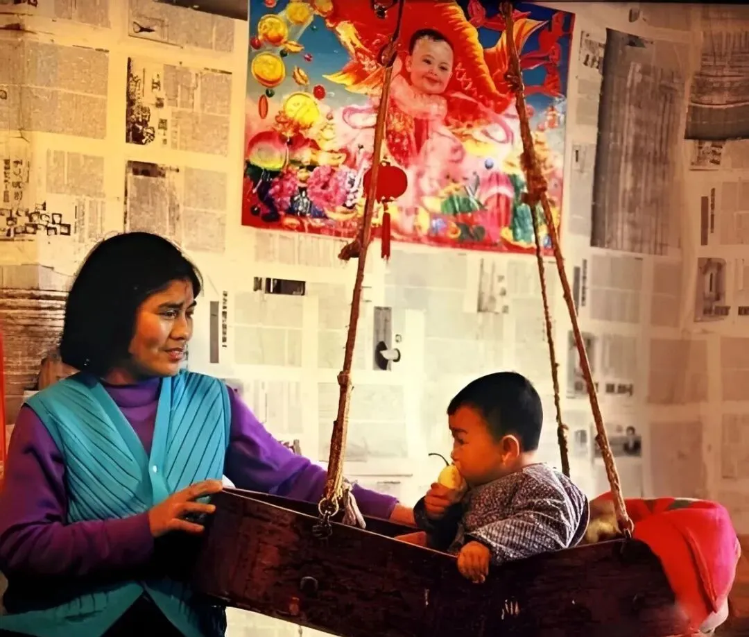 这个悬在梁上的叫木吊摇篮,木板拼成船形,绳子一拽就晃,宝宝啃着一个小苹果,娘在旁边轻轻拍着,困意爬上眼皮,一觉能睡到天黑。