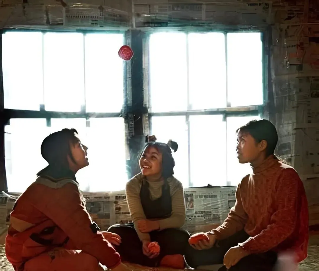 这游戏叫丢沙包,几个小伙伴围成一圈,红沙包在空里划个半弧,笑声在炕屋里回旋,窗纸糊得严严的,阳光从缝里钻进来,一道一道亮。