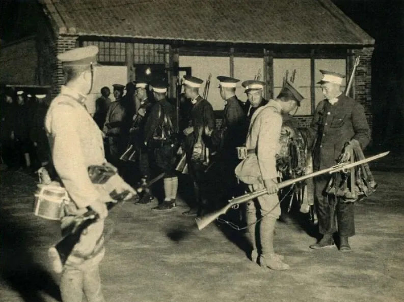 图中人排成一串,嘴角抿着,那会儿最要紧的是口令,短促干净,夜风里一喊,回音在墙面上磕一下弹回来,像有人在耳边再说一遍,姥爷学给我听,声调陡一下又落下去,像压住一口怒气不让它炸。