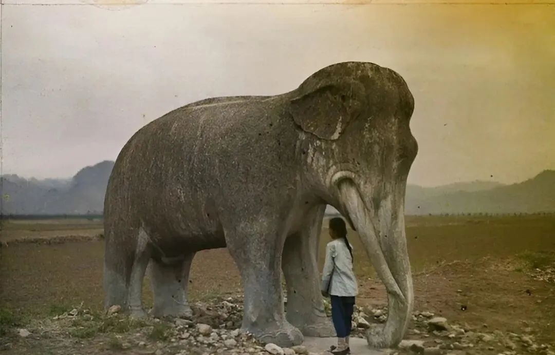 这张把神道一口气拉得很远,两侧石兽排队,最前面两只大象像把门的胖亲戚,肚皮圆得发亮,路中心车辙深得能灌水,想到现在游客踩着石板慢悠悠地走,心里忍不住咂摸一句,时代真会改路。