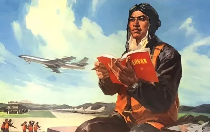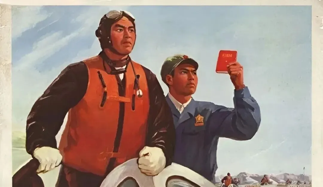 图中那本小红书就不必多说了,站在旁边的同志举起书页冲着阳光,像对着准星找方向,飞行员握着方向舵把,脸上静得很,那会儿讲一句,思想通了,航线就不迷航,现在再看,既是时代里的仪式,也是年轻人心里的定盘星。