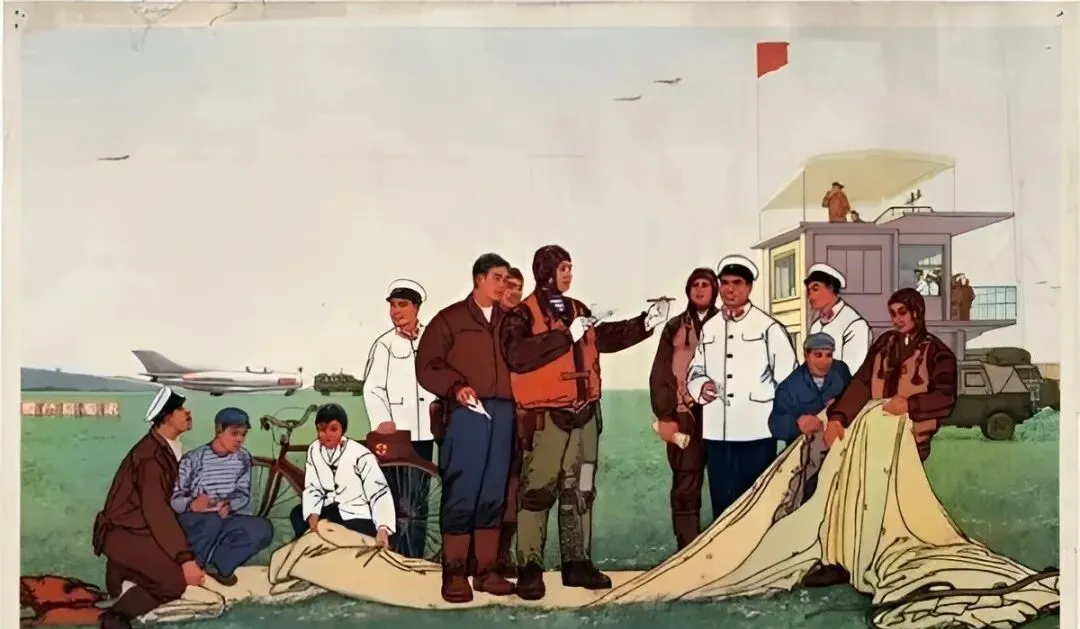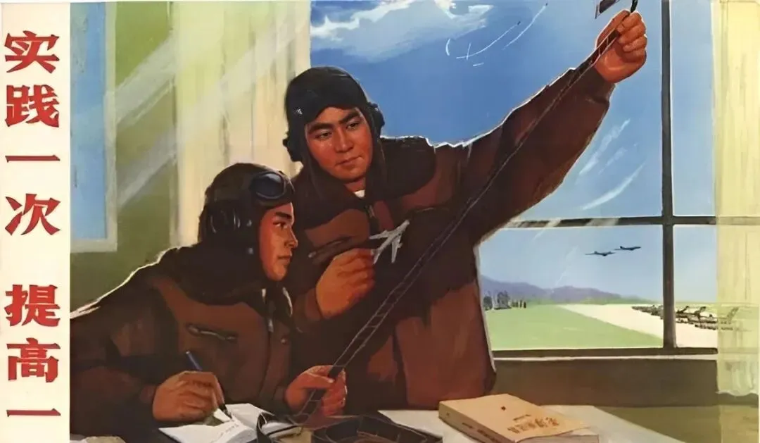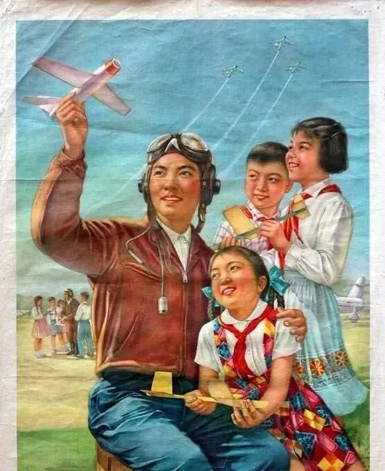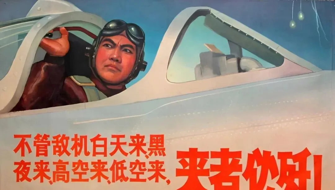 你还记得那张墙上的大幅宣传画吗,红底白字醒目得很,飞行员戴着护目镜往天上一指,那股子劲儿隔着岁月都能扑面而来,我家老柜子里还压着几张卷了边的旧画,翻出来一张一张看,像把时针拨回去,耳边全是喷气的呼啸声和教导员的口号声。