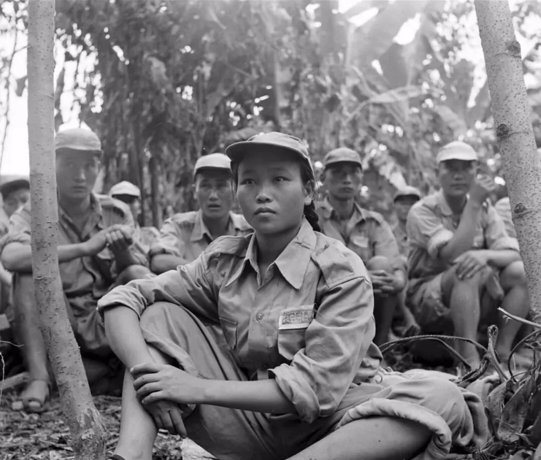 那会儿谁还管合体不合体啊,发下来的就套上,袖口破了就拿线粗粗缝两针,照片里她眼神有点怔,也不怯场,像在等口令,也像在等回头路,可这路多半回不去了。