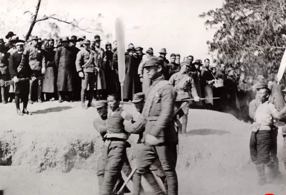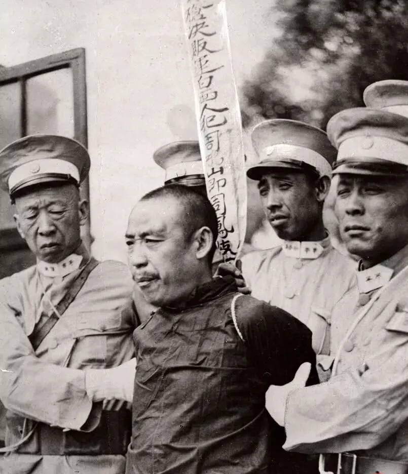 老照片:国民政府强力禁毒,警察当众枪毙鸦片贩子。