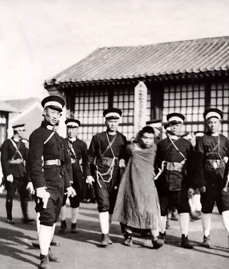 这队制服利落,是租界里的警察,白边帽子一水儿整齐,犯人被扭着往前走,脚下一软一硬,像没睡醒,街口的日光打在地砖上,亮一块暗一块,外面世界正新鲜得很,电车哐当过,照相馆挂起洋招牌,可人心里那点贪念还在,禁令得一遍遍念。