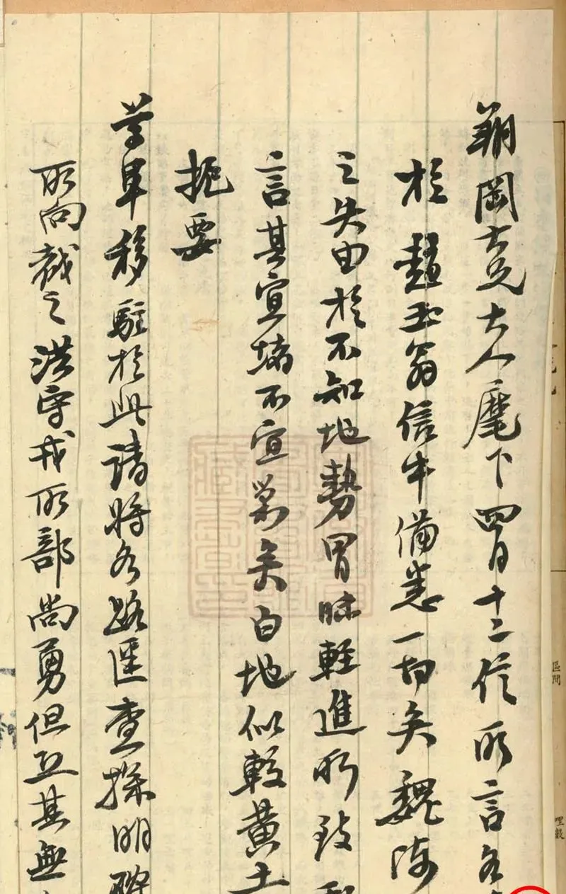 这一页写得飞快,黑墨浓得发亮,竖行落得紧,转折处锋刃利,像刀刻在纸上,爷爷讲起他时总爱学个腔调,说他见外宾爱怼人,嬉笑一句就能把对方噎着,可转脸又能拍桌定主意,手札里那些“移驻”“轻进”“筹饷”的字眼,都是干巴巴的军务,可写来却像火苗子往上窜,当时没有微信没有电话,事都压在纸上跑,写得急了,脾气也就从笔里窜出来了。