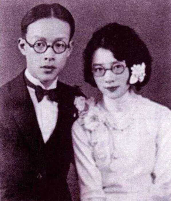 图中这对穿着西装和软呢裙的年轻人,是那代新式学子,圆框眼镜透着书卷气,男生打着蝴蝶结,女生耳边别着一朵花,黑白底子里飘出一点少年人的腼腆。