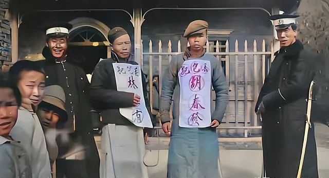 几个人胸前挂着白牌子站在站台前,旁边的差役笑得露出了牙,路过的孩子探着头看个新鲜,爷爷说,这叫示众,既丢人也吓人,牌子一挂,江湖上的小聪明就不那么灵了。