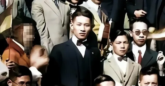这位站在人群中央的西装少年,领结紧贴喉结,站姿笔直,眼睛望向远处,脸上还带着青涩,像刚从书卷里抬起头,风一吹,意气就上来了。