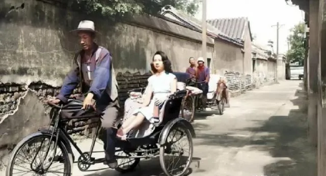 这条窄巷里三轮车叮当响,前座的姑娘揽着包,车夫戴一顶旧毡帽,胳膊青筋绷着,车辕一抬就滑出一截路,那时候出门最讲究一个稳字,现在打车一键下单,快是快了,人味儿淡了点。