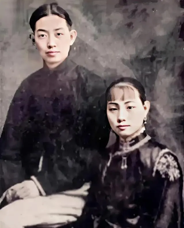 青砖门廊里一左一右站着,女方衣襟滚金线,男方素色中山装,站姿像两根钉子落在门槛上,那会儿合影讲究对称,心里头的火热全用规矩裹起来。